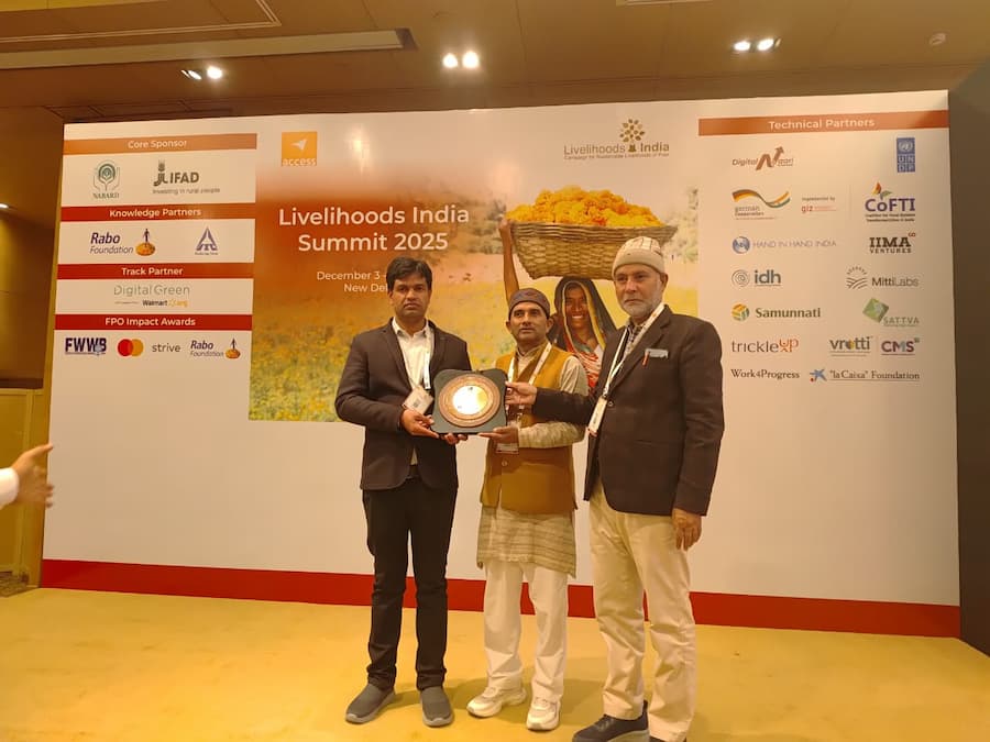 The Company-supported FPO Bhu Amrit has been honoured with the FPO Impact Award (FPO of the Year 2025 – Small Category) at the Livelihood India Summit, presented by the Chairman of NABARD and the CEO of Access Development Services.