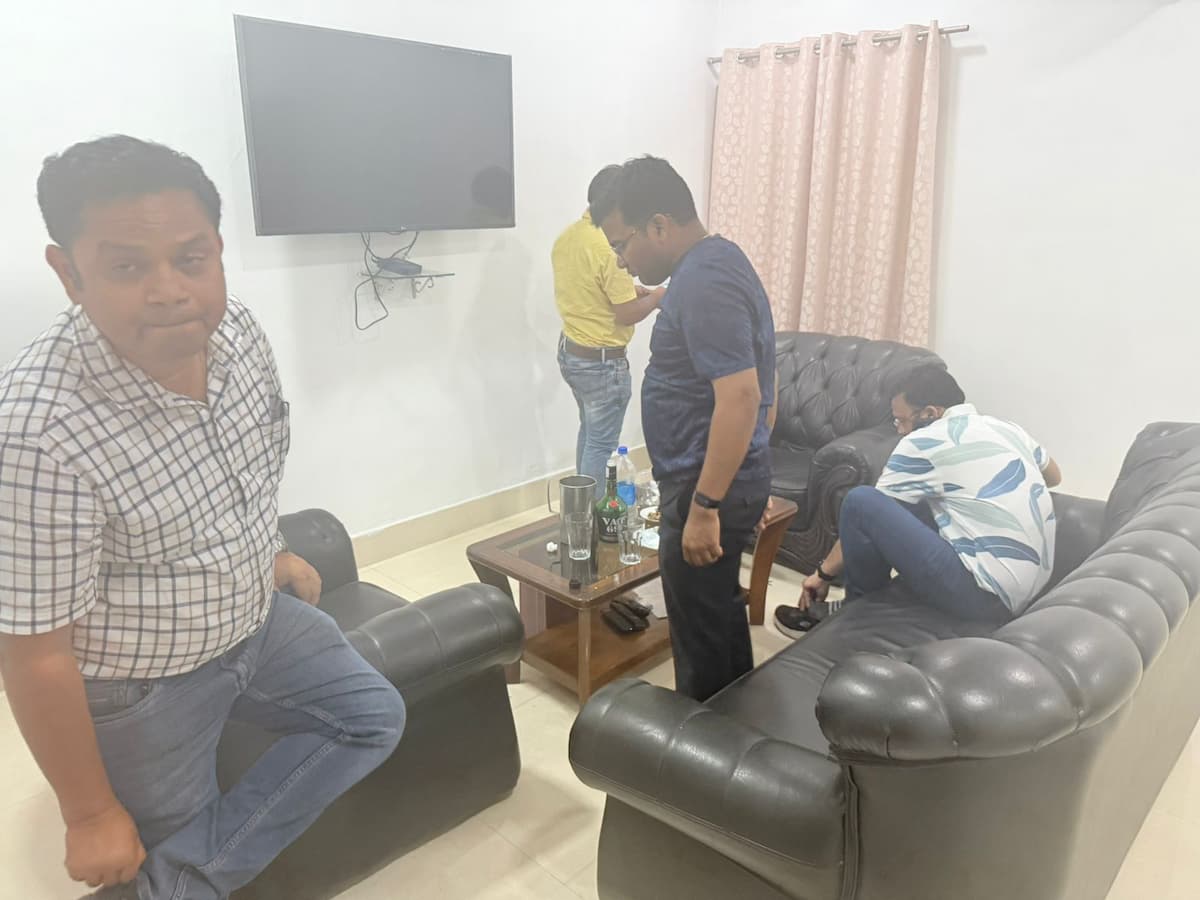 एक वीडिया में विश्राम गृह के किचन में रखे फ्रीजर में शराब की कई बोतलें रखी हुईं दिख रही हैं। एक युवक को शराब की बोतल और गिलास लेते हुए कमरे की ओर जाता हुआ देखा जा सकता है।