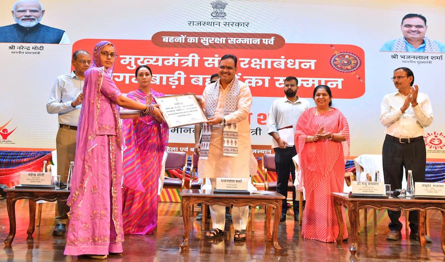 August 2025, Jaipur, Rajasthan : In a heartwarming gesture ahead of Raksha Bandhan, Chief Minister of Rajasthan, Shri Bhajan Lal Sharma marked the state-level ‘Anganwadi Behen Samman Diwas’ at Birla Auditorium, Jaipur by getting rakhis tied by Nand Ghar Didis. The event celebrated the spirit of protection, unity, and care while honouring the dedication and creativity of grassroots women leaders.