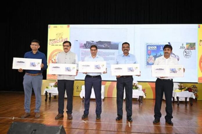 In the session on “Relevance of Customised Stamp for Coal Industry in Golden Jubilee Year”, Shri Alok Kumar Gupta, Head of Department, CC & PR, CCL, highlighted the significance of a Special Cover dedicated to the “Coal Warriors” of Coal India and CCL for their vital role in ensuring the nation’s energy security. On this occasion, a Special Cover (Customised Stamp Ticket) and souvenir “Navchetna” were jointly released by Shri Nilendu Kumar Singh, CMD, CCL; Shri Pawan Kumar Mishra, Director (Finance); Shri Harsh Nath Mishra, Director (HR); and Shri R.V. Chaudhary, Director, Postal Services, Jharkhand. The Special Cover symbolises the commitment, perseverance, and contribution of every employee forming the backbone of India’s energy infrastructure.