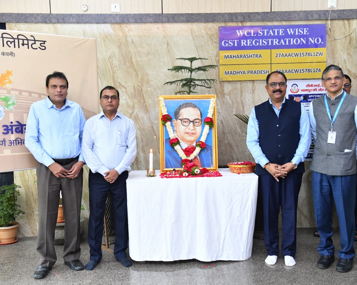 On 14 April 2026, Dr. B. R. Ambedkar was paid heartfelt tributes at Western Coalfields Limited (WCL) on his birth anniversary. At a function organized at the company headquarters, Director (Finance) Shri Bikram Ghosh, Director (Human Resources) Dr. Hemant Sharad Pande, Director Technical (Planning & Projects) Shri Sandeep S Paranjpe and Chief Vigilance Officer Shri Ajay Madhukar Mhetre offered floral tributes to Dr. Ambedkar and paid their respects.