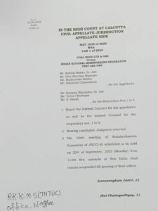कलकत्ता हाईकोर्ट के डबल बेंच ने सीआईएल (CIL) जेबीसीसीआई- XI की मानकीकरण समिति की बैठक को अंतिम आदेश पारित होने तक के लिए स्थगित रखने का निर्देश जारी किया।